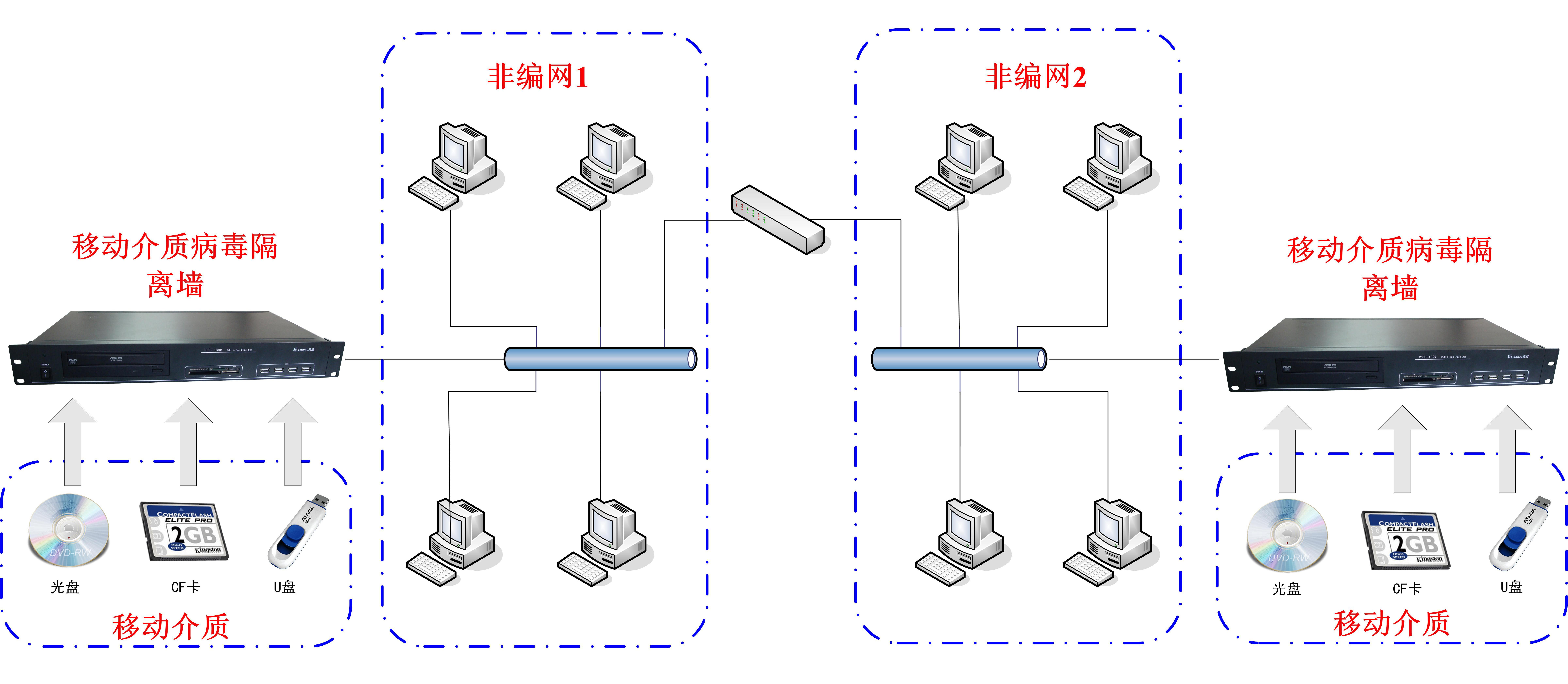 移動介質病毒隔離墻在設計上嚴格遵循——“除非明確允許,否則就禁止”的白名單基本原則,以文件為單位對傳輸內容進行格式分析和過濾,以確保對USB設備、DVD光盤等存儲設備上的病毒進行有效識別、并隔離。